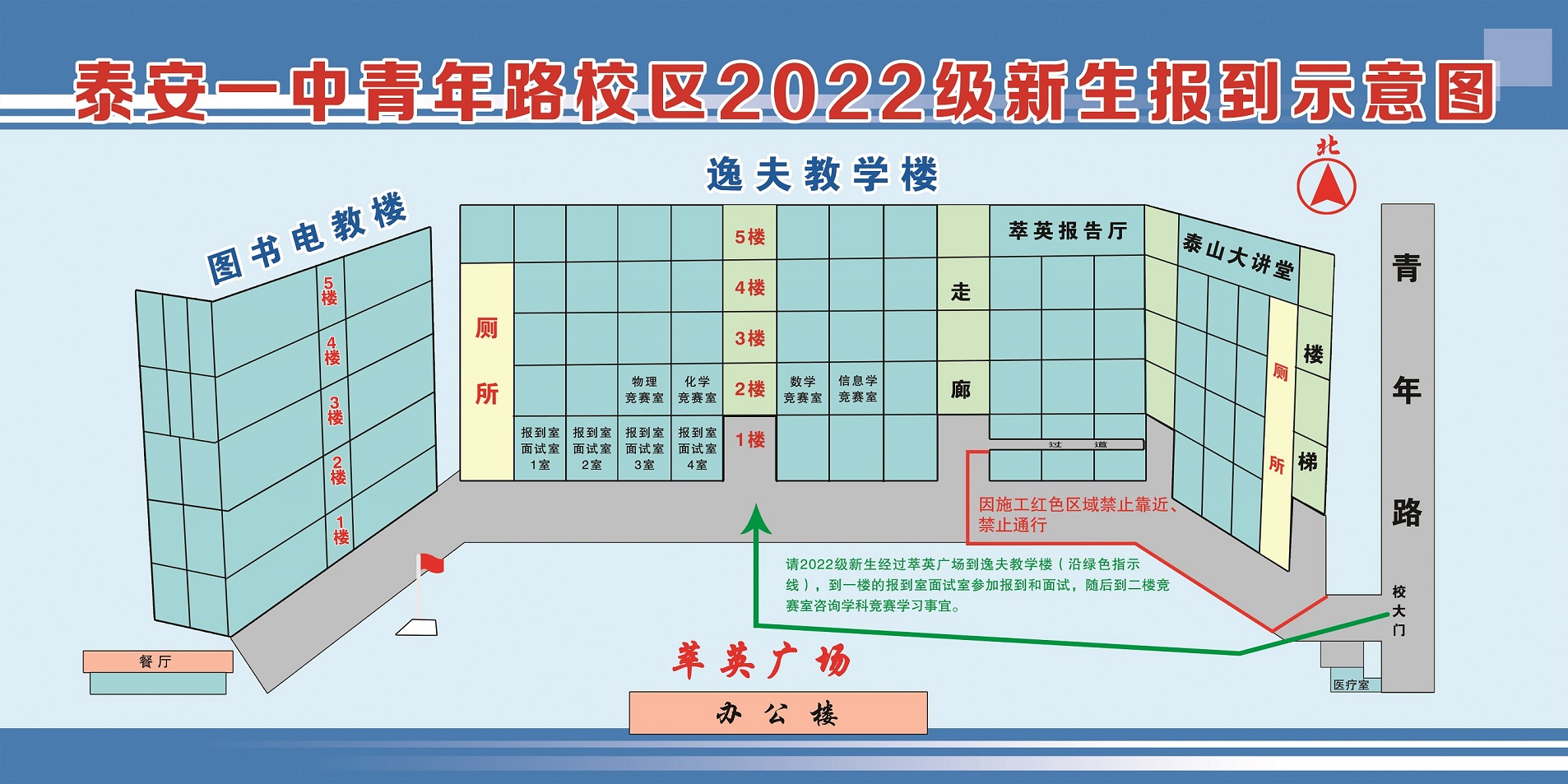 泰安一中青年路校区2022级新生报到示意图