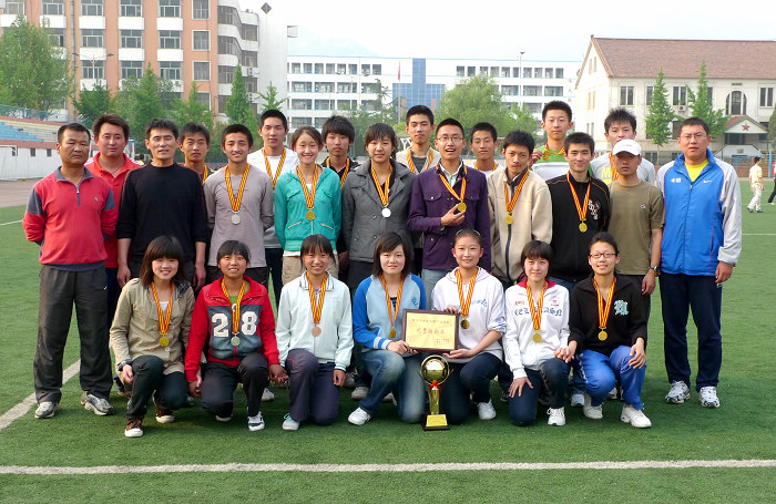 我校田径代表队在2009年中学生运动会田径比赛中共取得了9项冠军、5项亚军,团体总分亚军的好成绩。