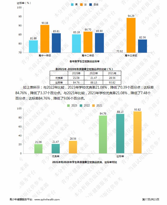 【体育评价】泰安一中2023年度学生体质健康测试成绩评价